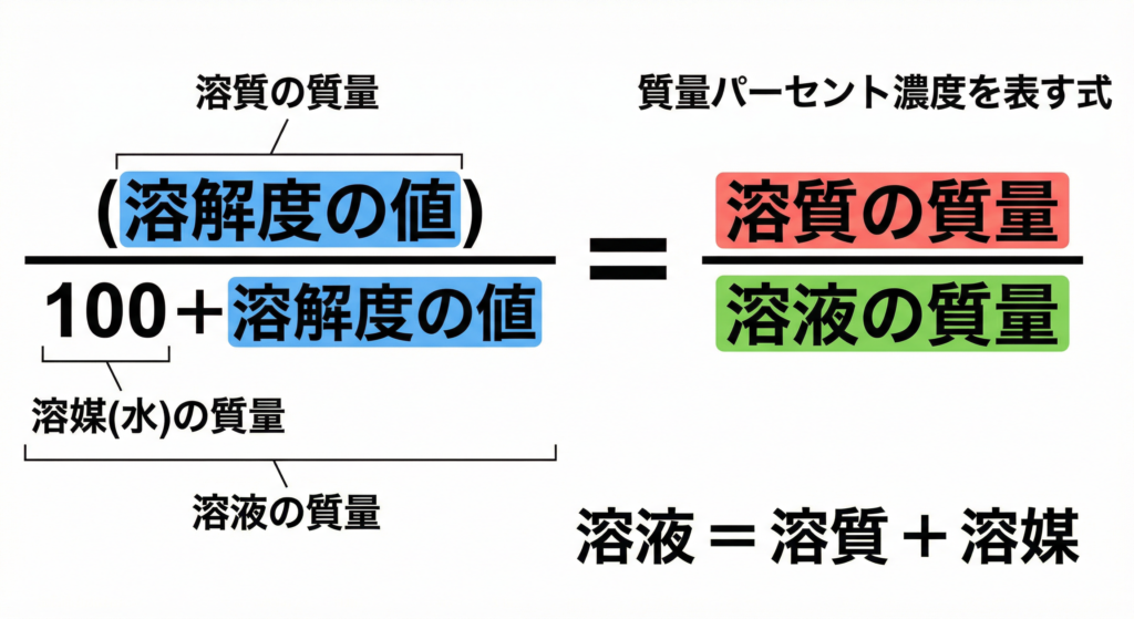 「水(溶媒)100gに対して溶ける溶質の質量」